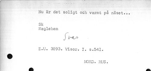 //// Nu är det soligt och varmt på näset... Sk //// Maglehem //// j //// H.U. 3893. Visor. I. s.541. //// NORD. MUS. ////