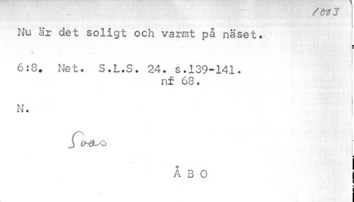 //// SCrfJ //// " J -» - - //// I //// Nu är det soligt och varmt på näset. //// ¦ //// 6:8. Net. S.L.S. 24. s.139-141. //// nf 68. i //// i , II //// N. //// ABO I //// 1 ////