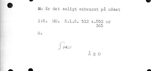 //// ^ Nu är det soligt ochvarmt på näset //// 1:8. HO. S.L.S. 512 s.552 nr //// 265 //// N. //// foy $$ //// j //// ÅBO ////