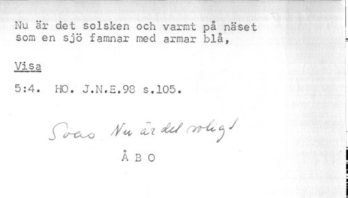 //// Nu är det solsken och varmt på näset //// som en sjö famnar med armar blå, b //// Vi s a I //// \ //// 5:4. HO. J.N.E.93 s.105. i //// '¦' l i'3. '''- IffBISr/r ' • f //// ^v^pBli .'.I //// ÅBO ' I //// I i ////