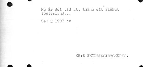 //// Nu ar det tid att tjäna ett älskat fosterland«.. //// Se: E 1907 cc //// KB:S SKlLLINGTRYCKSREG. //// M mk M m A ////