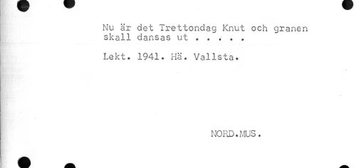 //// Nu är det Trettondag Knut och granen skall dansas ut ..... //// Lekt. 1941. Hä. Vallsta. //// //// /NORD.MUS. ////