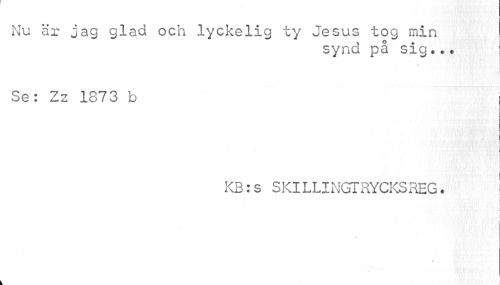 //// Nu är jag glad och iyckelig ty Jesus tog min //// synd på sig.*. //// -i //// Se: Zz 1873 b //// . V'. ¦¦ //// i //// KB:s SKILLINGTRYCKSREG. //// i ////