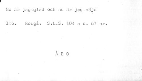 //// Nu är jag .glad och nu är jag nöjd //// i //// 1:6. Borgå. S.L.S. 104 a s. 67 nr. //// Å B O //// mfb * ////