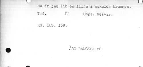//// M //// Nu är jag lik en lilja i oskulda brunnen, 7:4. PE Uppt. Wefvar. //// R3, 165, 159* //// ÅBO RANCKEN MS //// * ////