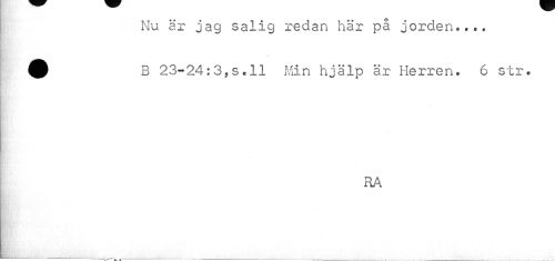 //// Nu är jag salig redan här på jorden..., B 23-24:3?s.ll Min hjälp är Herren. 6 str. //// RA ////