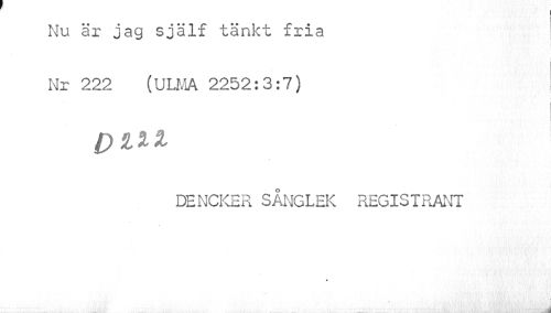 //// Nu är jag själf tänkt fria Nr 222 (ULMA 2252:3:7) //// pm //// DENCKER SÅNGLEK REGISTRANT //// « //// Å ////