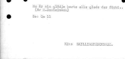 //// Nu är min glädje borta alla glada dar förbi.. (Av H.Danielsson) //// ^ Se: Qa 11 //// KB:s SKILLINGTRYCKSREG. ////