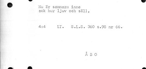 //// Nu är sommarn inne ack hur ljuv och säll, //// 4:4 LT. S.L.S. 360 s.98 nr 66. //// ÅBO //// » ////