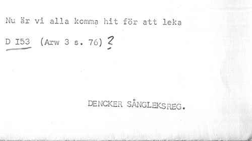 //// Nu är vi alla komma hit för att leka //// « //// D 153 (Arw 3 s. 76) 2 //// DENCKER SÅNGLEKSREG. //// _ _ ____ . . , . ^ _____ .....; M ////