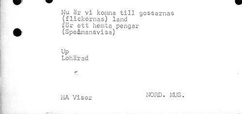 //// Nu* är vi komna till gossarnas (flickornas) land för ett hernta pengar (Sperhmansvisa) //// Up //// Lohärad //// c //// t t ft cm- NORD. MUS. //// HA Visor ////
