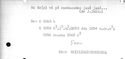 //// Nu är(r) vi på maskeraden jaså jaså... //// (Av J.Jolin) //// Se: N 1863 b //// E 1852 hJ,l3,v3;1853 dd; 1854 x»rr,a3; 1856 nn,xx; 1869 c3 //// KB: s S Kl L LI NGT RYCKS REG § ////