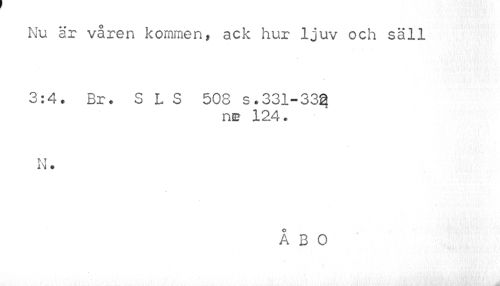 //// Nu är våren kommen, ack hur ljuv och säll //// 3:4. Br. S L S 508 s.331-332 //// nm 124. //// N. //// ÅBO ////