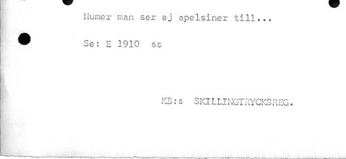 //// Numer man ser ej apelsiner till... ® Se: E 1910 ss //// KB:s SKILLINGTRYCKSREG. //// __.__._ . .^-i^-. y. ////