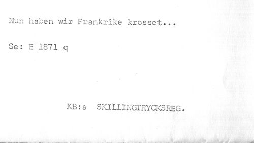 //// Mun haben wir Frankrike krosset... Se: E 1871 q //// \ //// * //// KB:s SKILLINGTRYCKS REG. //// _____-_____... ... . ,. JL ////