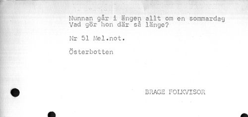 //// ITyMw Y^y lv^\5v5ffJ; f >¦i ¦<;]»»]. •' Kraft v: y « ' y-i- \ //// Nunnan går i ängen allt om en sommardag Vad gör hon där så länge? //// Nr 51 Mel.not. //// Österbotten //// * //// A BRAGE FOLKVISOR ////