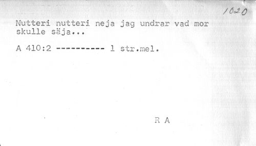 //// /6j o //// Nutteri nutteri neja jag undrar vad mor skulle säja».. //// A 410:2 ----- 1 str.mel. //// R A ////