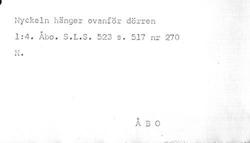 //// Nyckeln hänger ovanför dörren 1:4. Åbo. S.L.S. 523 s. 517 nr 270 N. //// t //// ÅBO //// 1 ^ ^fJ*.* X . - 1 LMiiiiL ~ lid ////
