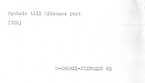 //// t //// Nyckeln till Rikemans port (326) //// H-CAVALL-STEPHENS KB ////