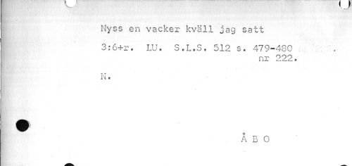 //// ¦Ef.?-'"" //// Nyss en vacker kväll jag satt //// H ' //// 3:6+r. LU, S.L.S. 512 s. 479-480 . . //// nr 222. //// T //// i\ * //// ¦ V //// ÅBO ////