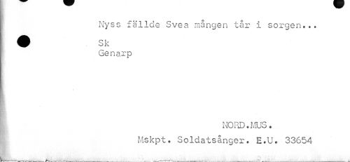 //// Nyss fällde Svea mången tår i sorgen* Genarp //// NORD. MUS. Mskpt. Soldatsånger. E.U. 33654 ////