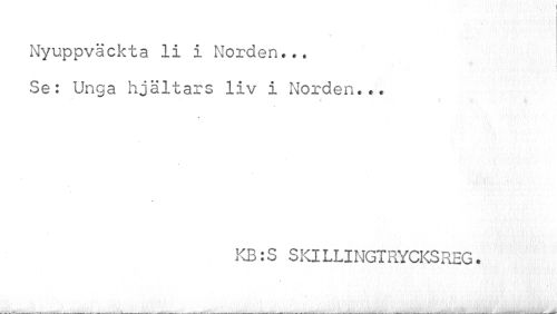 //// Nyuppväckta li i Norden... //// Se: Unga hjältars liv i Norden*.. //// KB :S S KlLLINGTRYCKSREG. ////
