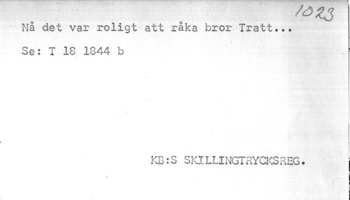 //// Nå det var roligt att råka bror Tratt... Se: T 18 1844 b //// KB:S SKILLINGTRYCKSREG. i //// ¦¦ //// s //// I //// \ //// ' ' ' 'F ' ////