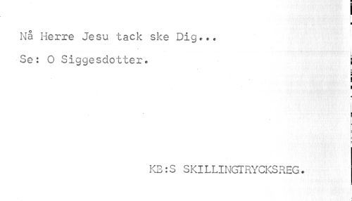 //// I //// I //// I //// Nå Herre Jesu tack ske Diget, //// i //// Se: O Siggesdotter? j //// p //// ¦ //// i i //// i //// KB:S SKILLINGTRYCKSREG. ////