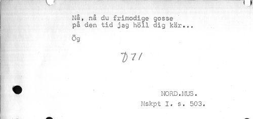 //// Nå, nå du frimodige gosse //// på den tid jag höll dig kär.,. //// * //// Ög //// K ;|||| //// T) t //// $ • //// ^ NORD.MUS. //// Mskpt I. s. 503. ////