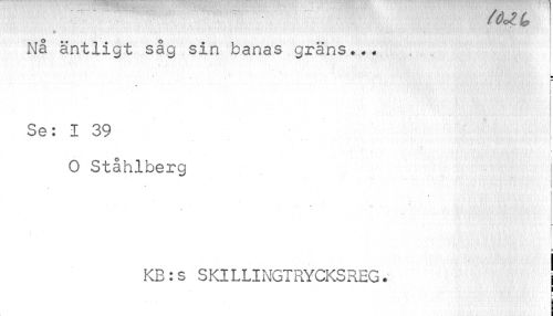//// (octy //// » ' •¦''' i v v • //// Nå äntligt såg sin banas gräns... //// ¦ //// Se: I 39 //// i //// O Ståhlberg //// i //// i //// KB:s SKlLLINGTRYCKSREG. //// | //// i i ////