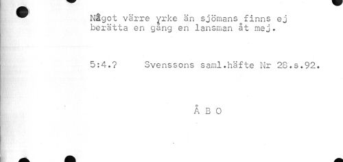 //// Ibi //// ^ Något värre yrke än sjomansofinns ej //// berätta en gang en lansman åt mej. //// 5:4.? Svenssons saml.häfte Nr 28.S.92. //// o //// A B 0 ////