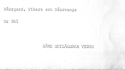 //// Nårrgard, Vikers och Nårrvanga Nr 361 //// 1 - t\ • //// SÄWE GOTLÄNDSKA VISOR //// " .r //// flMmHMwil //// . - _____ . k. ____—_____--—---—--—___-v. --—-#»' ////
