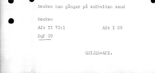 //// Neeken han gångar på snöhvitan sand //// ^ Ne eken //// Af2 II 73:1 A£z I 89 //// DgF 39 //// GEIJER-AFZ. ////