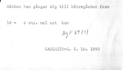 //// Näcken han gångar sig till härregården fram 14 - 6 str. mel not kom //// CARLHEIM-G. S. LM. 1892 ////