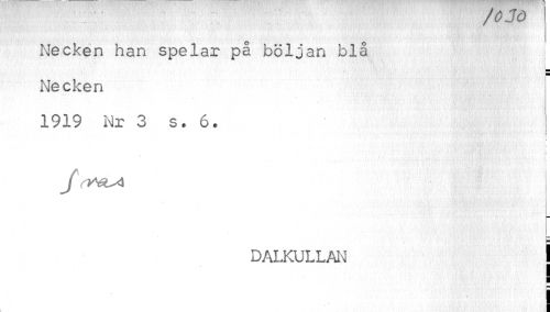 //// /c/ju //// Necken han spelar på böljan blå //// b //// Necken //// - //// 1919 Nr 3 s. 6. //// ; t //// j(wla //// t //// DALKULLAN I //// I //// I //// i ////