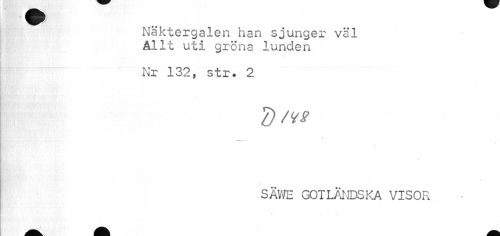 //// Näktergalen han sjunger väl ÅlIt uti gröna lunden //// Nr 132, str. 2 //// SÄWE GOTLÄNDS KA VISOR //// wl, j/k ////