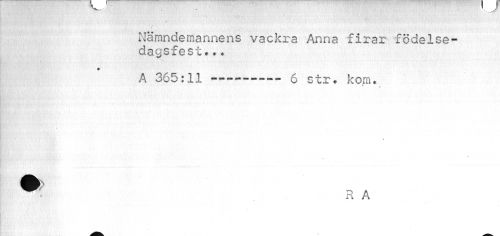 //// nämndemannens vackra Anna firar födelsedagsfest //// t t //// A 365:11 —------6 str. kom. //// * //// i //// ¦ R A ////