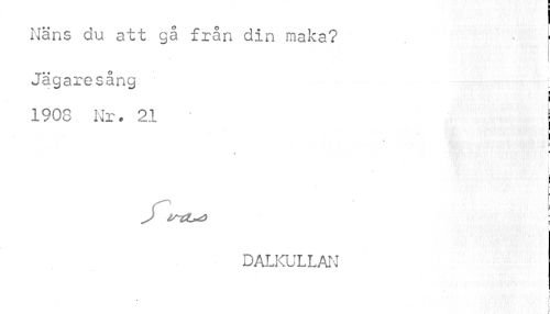 //// I //// Näns du att gå från din maka? Jägaresång //// ¦ //// 1908 Nr. 21 j //// i //// » //// P i //// S^is-tl^ ; //// DALKULLAN //// I //// * //// i i ////