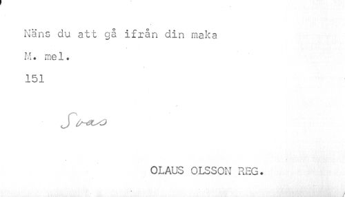 //// Näns du att gå ifrån din maka //// M. me1. //// 151 //// Jl^LsO //// . K ¦ t Ii' v'-.'• '<¦¦'> • ¦ //// /r //// OLAUS OLSSON REG. ////