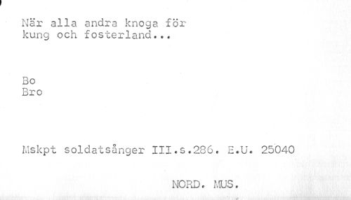 //// När alla andra knoga folkung och fosterland... //// Bo Bro //// Mskpt soldatsånger III.s.236. E.U. 25040 //// NORD. fvflJS. ////