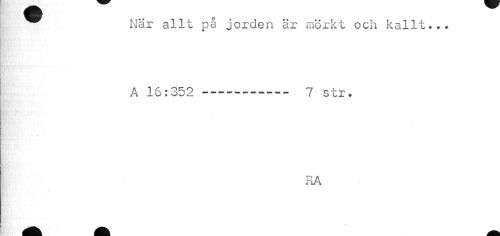 //// När allt pa jorden är mörkt och kallt... A 16:352 ------ 7 str. //// Hr //// •v • //// RA //// * ////