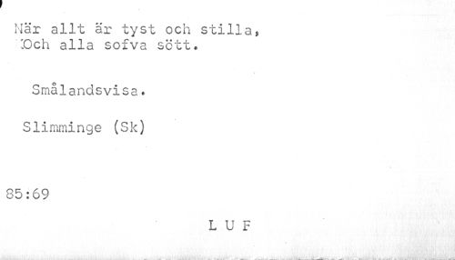 //// Här allt är tyst och stilla, ¦Och alla sofva sett. //// Smålandsvisa * Slimminge (Sk) //// 85:69 //// LUF //// .•¦i . i iftflffrfr. ;rf U O. il,i'.'.i' i (.•' •'-:'« yl ... :v.J„. . i:ilAiöcÄJ • K.l a-»'' . •' • c-.f- . <aV> i ^ , ni,.. • ..Mvi UL. ¦. iV-.jtiÄV /'.•: -v. itMiMli ////