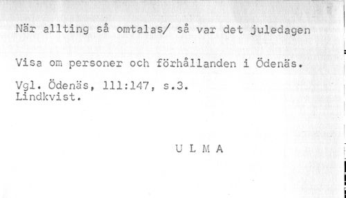 //// När allting så omtalas/ så var det juledagen //// i //// L ¦ //// Visa om personer och förhållanden i Ödenäs. //// Vgl. Ödenäs» 111:147, s.3. Lindkvist. //// I ; //// » //// vf[ Yj; //// U L M Ä [ //// i //// i //// i ¦ //// s ////