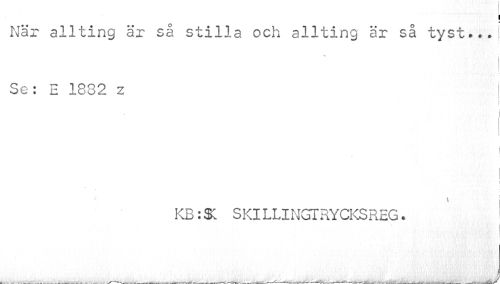 //// I //// I //// När allting är så stilla och allting är så tyst..*i Se: E 1882 z //// i i //// v //// KB: $: SKILLINGTRYCKSREG. ////