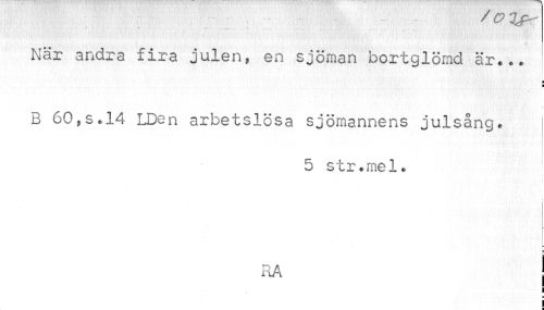 //// När andra fira julen, en sjöman bortglömd är... //// ¦ ¦ //// « //// B 60,s.l4 LDen arbetslösa sjömannens julsång. //// 5 str.mel. //// , u //// RA | //// I //// m j ////