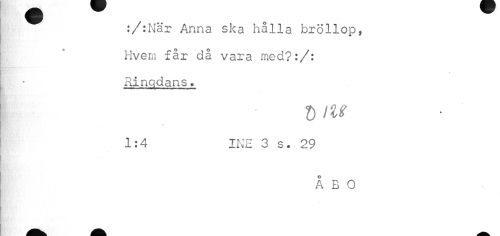 //// :/:När Anna ska hålla bröllop, Hvem får då vara med?:/: Ringdans. //// t m //// \ //// 1:4 INE 3 s. 29 //// ÅBO ////