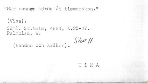 //// "När bonn wn körde åt timmerskog." (Visa). //// Sdml. St.Malm» 4834» s.25-27. Palmblad, W. //// £W //// /(Bonden och kråkan). //// U L M A //// __ ____ ____inli^k» .H.l_____M'. -____l___«___v____ ____._.___—---—____-----* ___^ ////