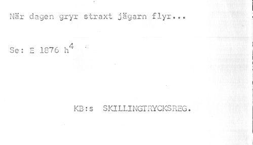 //// ! //// När dagen gryr straxt jägarn flyr... j //// • ';/ I //// I //// I //// i { //// Se: E 1876 h4 ' j //// i //// KB: s S Kl L LI NGT RYCKS REG. //// i //// t | ////
