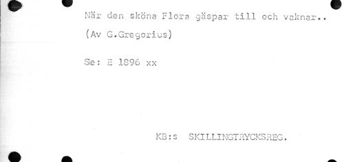 //// 1 w ^^ ^^ //// När den sköna Flora gäspar till och vaknar.. (Av G.Gregorius) //// Se: H 1896 xx //// y //// KB:s SKILLINGTRYCKSREG. ////