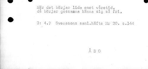 //// När det börjar lida emot våretid, då börjar gossanna känna sig så fri, //// ^ 3: 4.? Svenssons saml.häfte Nr 20, s.144 //// r t //// ÅBO //// .t //// v //// * ////